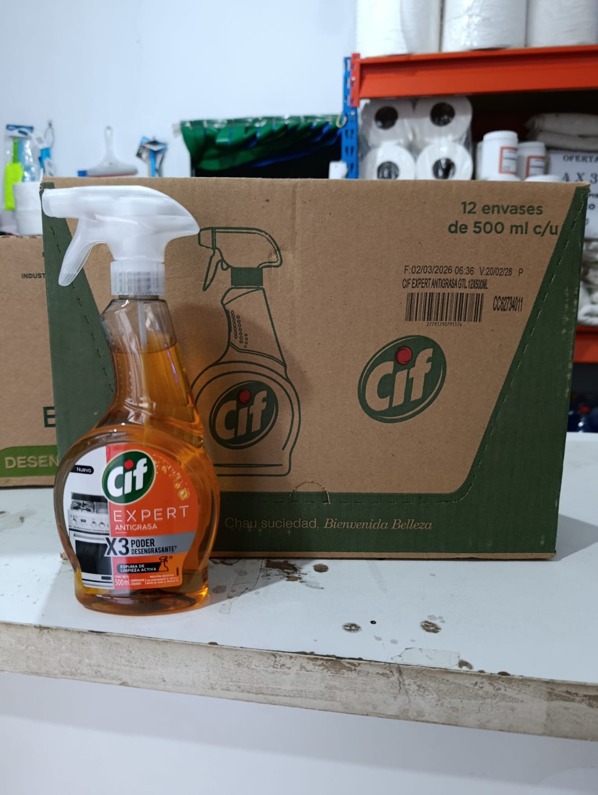 La caja de Cif Expert Antigrasa X3 es la solución perfecta para combatir la grasa más difícil de manera rápida y eficaz. Contiene 12 envases de 500 ml con gatillo pulverizador, diseñados para una aplicación práctica y precisa en todo tipo de superficies.
