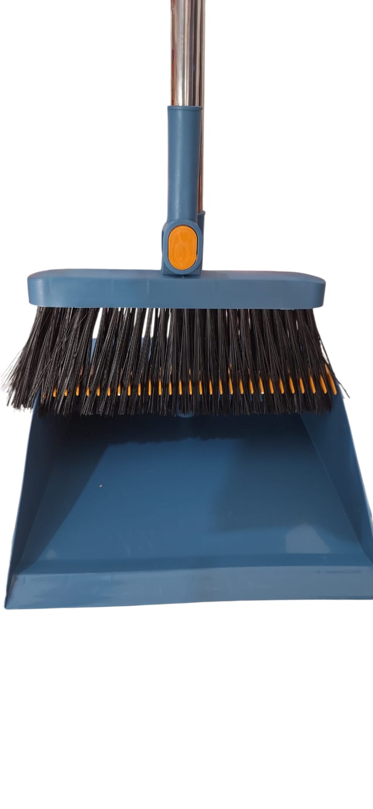 Escoba con pala articulada e imantada, ideal para una limpieza práctica y sin esfuerzo. Su diseño permite recoger la suciedad de forma eficiente sin necesidad de agacharse.