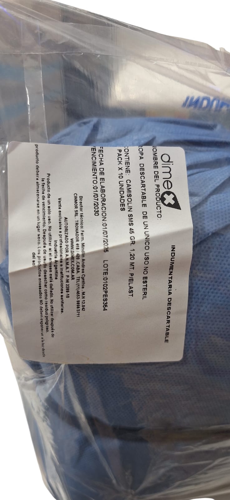 Camisolín descartable SMS Dimex, pack x 10 unidades. Liviano, resistente y de un solo uso, ideal para protección e higiene en entornos médicos, estéticos e industriales.